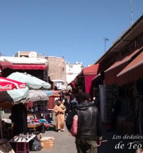 El camino de vuelta al centro lo realizo atravesando la Antigua Medina, el entramado de laberínticas calles construido en Casablanca durante el siglo XIX. Los mostradores exteriores de las tiendas de souvenirs se entremezclan con otras de alimentación, donde me llaman poderosamente la atención los cartones de huevos a pleno sol, o un carnicero espantando las moscas de su mercancía con una especie de escobilla. Por fin había encontrado el Marruecos auténtico. Lo que me sorprende positivamente es que , al contrario de lo que me esperaba, ningún vendedor me viene a atosigar. Cierto es que por mi aspecto y al ir sólo, no tengo pinta de turista